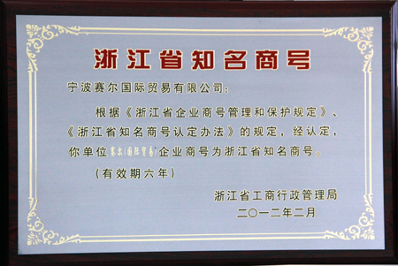 本網(wǎng)訊 日前,根據(jù)《浙江省企業(yè)商號管理和保護規(guī)定》、《浙江省知名商號認定辦法》規(guī)定,經(jīng)浙江省知名商號評審委員會審核通過,浙江省工商行政管理局認定116個企業(yè)商號為浙江省知名商號。我司“賽爾(國際貿(mào)易)”商號榜上有名,有效期為6。