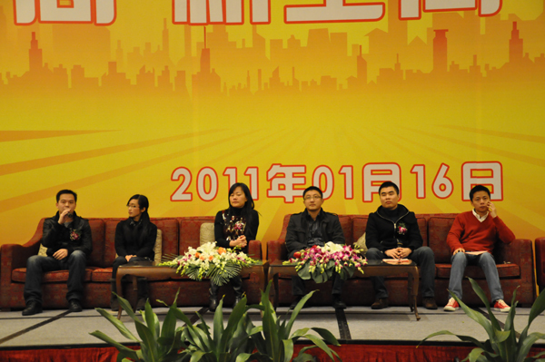 16日上午,湯一滸副總裁、徐欣總經理共同對話了凱越群突出貢獻獎代表。突出貢獻獎代表之一:英朗國貿的總經理史杰(他在2010個人出貨量達到1000多萬美元)當被問及到:“你是何時具備三國中關羽 ‘過五關,斬六將’能力的?” 他只是說到:“我的能力就是努力去面對問題,不要膽怯。目前,我們要去學習江蘇一帶的外貿公司,由于他們起步時間早,理念比我們的好,但是我們青,我們有最好的采購點(浙江一帶),我們要學習他們,復制他們,以至超越他們!” 史杰總經理從容的回應贏得了陣陣熱烈的掌聲。