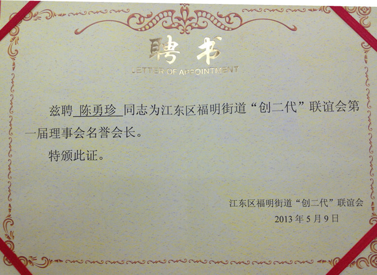 福明街道“創(chuàng)二代”聯(lián)誼會(huì)成立,陳勇珍被聘為名譽(yù)會(huì)長(zhǎng)