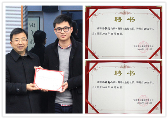 為使翻譯社組織工作更有力,會議決定由方總擔任翻譯社社長,錢青和姚暢分別擔任寧波、義烏執行社長,兩位執行社長負責翻譯社具體活動的組織工作,會議也請各位社員支持執行社長的工作,積極參與到各項活動中來。同時,2016年,翻譯社將吸收更多對外語感興趣的同事參與進來。