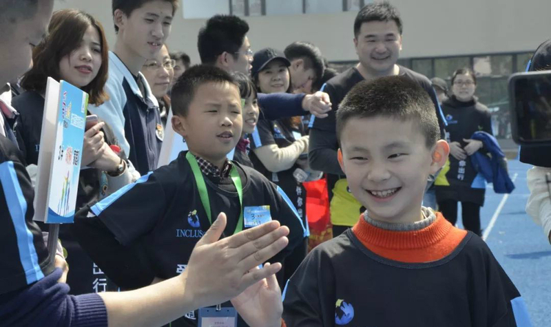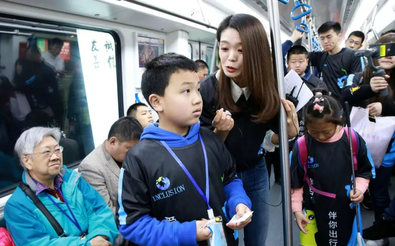 上午9點,賽爾志愿者在澤民地鐵站與星寶家庭匯合,在直播主持人帶領下,向群眾宣傳自閉癥和無障礙出行的相關知識,并協助星寶乘上地鐵,幫助他們順利抵達四明中學運動場。