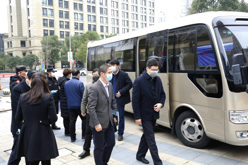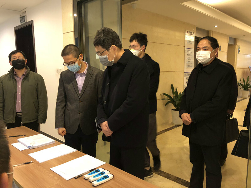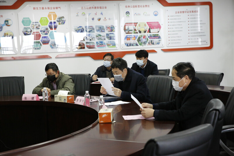 徐宇寧書記一行首先實(shí)地查看了集團(tuán)防疫措施落實(shí)情況。徐平炬總裁簡要介紹了一日兩次測溫、兩次環(huán)境消殺、應(yīng)急隔離以及防疫物資分類管理等安排,特別規(guī)定每天上午9點(diǎn)11分和下午1點(diǎn)33分各安排一次消殺,希望疫情早日散去。他強(qiáng)調(diào),集團(tuán)防疫小組對人員和環(huán)境的管理嚴(yán)格執(zhí)行“橫向到邊縱向到點(diǎn),不留死角不漏細(xì)節(jié)”的要求,確保分批復(fù)工能在安全可控的前提下有序推進(jìn)。