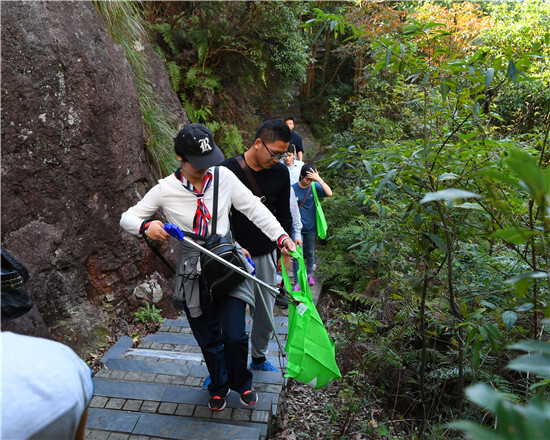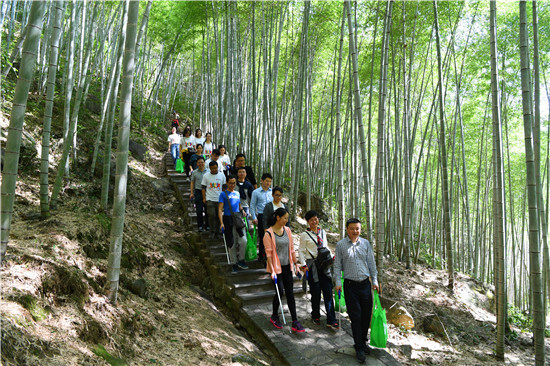 早上9點半,大家順利集結,統一的“山野清風”隊服讓我們的“大叔&美少女天團”顯得格外清新脫俗。入秋的中坡山依然有大片大片翠綠的竹林、涓涓溪流從大石塊間流過,清脆潺緩,悅人耳目。依稀還能聞到彌漫在山谷間濃郁的桂花香,沁人心脾。在藍天白云青山綠水環繞中,小伙伴們兩人一組,沿著青石步道,一邊呼吸著山中清新空氣,一邊撿拾被粗心路人遺漏的垃圾。一路上,小伙伴們結伴而行,把垃圾當成獵物,一些不起眼的煙頭也都統統收入囊中。結束后,大家還想給垃圾稱個重,比比哪隊撿得最多。雖然“攀比”之風要不得,但大家對公益環保的積極性可見一斑。