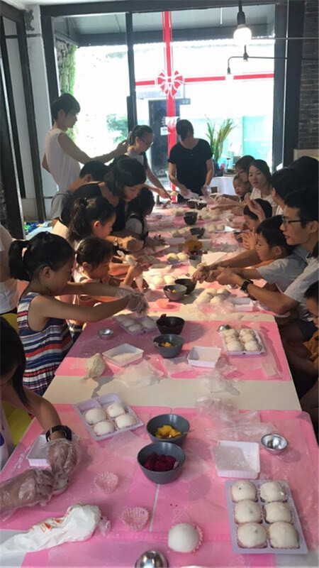 飯后,我們親手制作了甜品雪媚娘。在老師的悉心指導(dǎo)下,每位孩子都做得非常認真,從撐皮,到擠奶油,再到合縫裝盤,一氣呵成。最終每組家庭都帶回了一盒自己親手制作的雪媚娘。