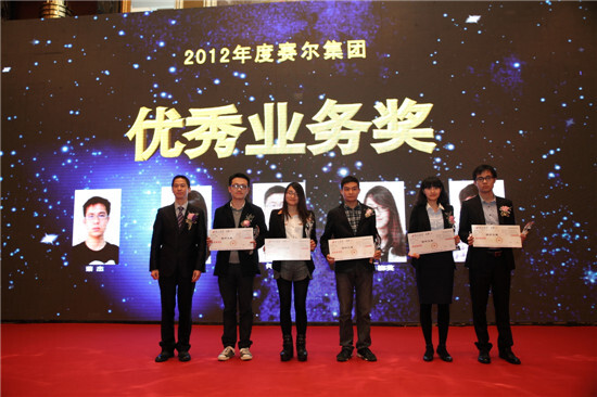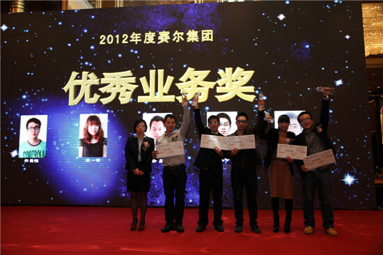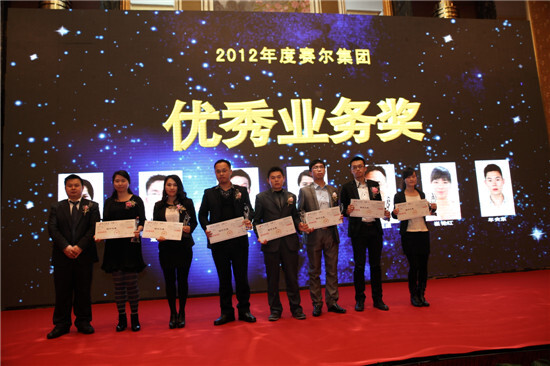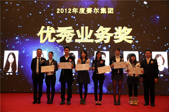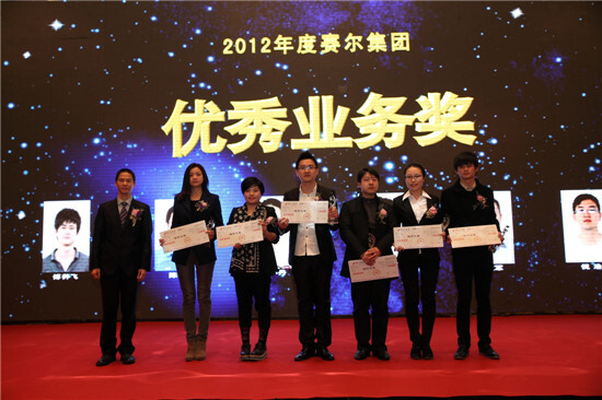 徐平炬董事長為賽爾國貿的優秀業務獎獲得者頒獎