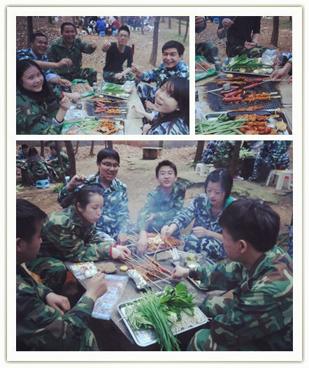 有的同學就充當起了新疆買買提,刷油,撒調料,有板有眼,還挺像那么回事兒的。串門子的同學也挺多,別人在烤,他卻在旁邊偷著吃,這個組吃一點兒,那個組吃一點兒,溜達得那個勤快