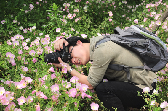走進東錢湖,紅的花,綠的草,構成一幅清新的畫卷,參加攝影俱樂部活動的愛好者們躍躍欲試,早已按捺不住創作的沖動,紛紛拿出各自的長槍、短炮拍攝起來。一陣陣的快門聲,讓攝影愛好者們很快進入角色,有的是凝神靜氣等待最佳時機撳動快門,把最美的畫面定格在一瞬間;有的是上下左右不停的調整,尋找拍攝的最佳角度,追求構圖、畫面的完美;有的架好腳架、取好景,手持快門線,等待畫面中出現一只蜜蜂、一只蝴蝶或一只蜻蜓,讓畫面更加生動。盡管烈日當頭、酷暑難耐,但大家都在享受著攝影帶來的快樂。