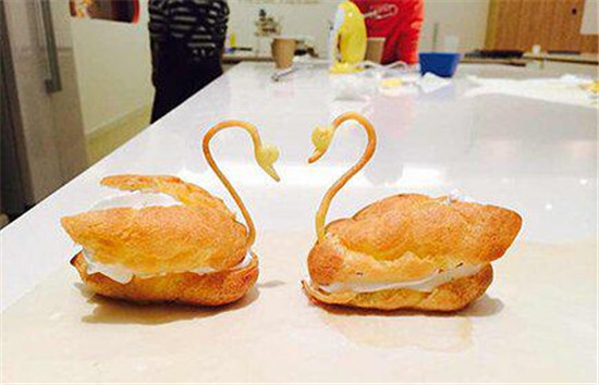 5月24日早上10:30,優景童鞋們一行12人,相約在和義大道MFC烘培教室,學習“巧克力果仁司糠”和“天鵝泡芙”的制作。低粉拌蛋、擠天鵝脖子、烤造型、加奶油,天鵝泡芙誕生啦!