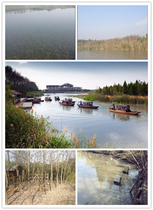 秋天的溱湖,景色一如傳說中那么優美。湖水清澈,蘆花搖曳,櫓船游蕩,歌聲悠揚。濕地公園氣候濕潤,草食豐茂,很多珍稀動物長期在此居住,如天鵝、麋鹿等等。