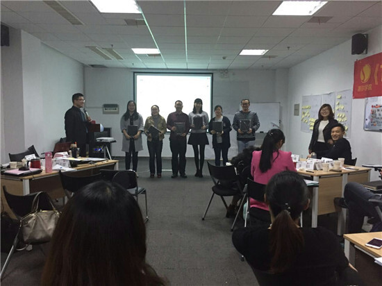 平日里傳播知識的講師們,這一次都謙虛地做回了學(xué)生。8日,全體講師迅速分成4個小組,選出組長,開始了一天的學(xué)習(xí)。從訓(xùn)前需求調(diào)研,到課程目標設(shè)定、結(jié)構(gòu)搭建、細節(jié)設(shè)計,再到課前試講驗收,系統(tǒng)的理論知識大大開拓了講師們的視野與思路。第二天,講師們紛紛上陣,拿出各自的主講課件,走上講臺實戰(zhàn)演練,把整個課堂的氣氛推向高潮。趙軍老師帶隊的第2小組奪得全場冠軍,在全班贊美的掌聲中領(lǐng)取了獎品。