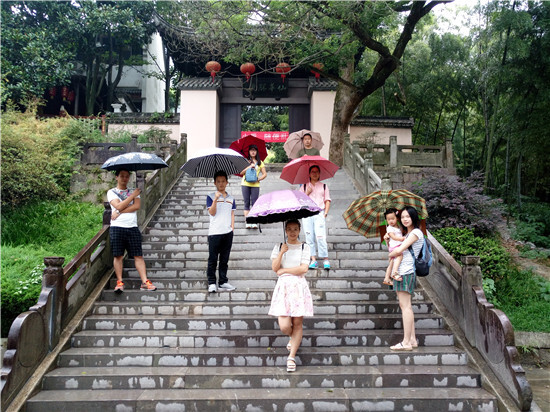 早上7:30,義烏的講師們在公司大樓集合,趙豐和王建鋒兩位男老師做起了專職司機為大家開路。經過1個多小時的車程,終于到達第一站目的地:仙華山。可惜天公不作美,雨一直下著,考慮到山上氣溫低,雨天路更滑,加上翠萍講師的小寶寶承受力較弱,大家果斷決定,在景區正門口來個大合照,以證明到此一游。然后前往下一站:遠近聞名的新光村。下車后,映入眼簾的新光村簡直就是一副畫卷,那么美輪美奐,靜謐安寧。精致的建筑,規模宏大;豪華氣派的古門牌坊,雕塑精美;撐著傘,走在鵝卵石鋪成的老街弄堂,來到廿玖間里的創客基地:青年旅舍、小酒吧、手工DIY、書畫、簡曦花藝一家挨著一家……如此原滋原味的民俗遇上青年創客的當代慢生活,是那樣的不謀而合。此時,大家似乎覺得下雨天這般意境,反而更美了。
