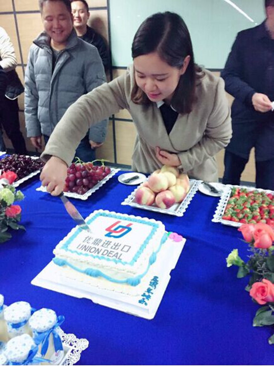 11月28日,是優鼎進出口成立三周年的日子。每年這個時候,正值優鼎出貨期,許多同事都在倉庫忙碌,在工廠驗貨出貨,所以以往幾年都是簡單慶祝,今年則有點特別,給了所有同事一個大大驚喜。