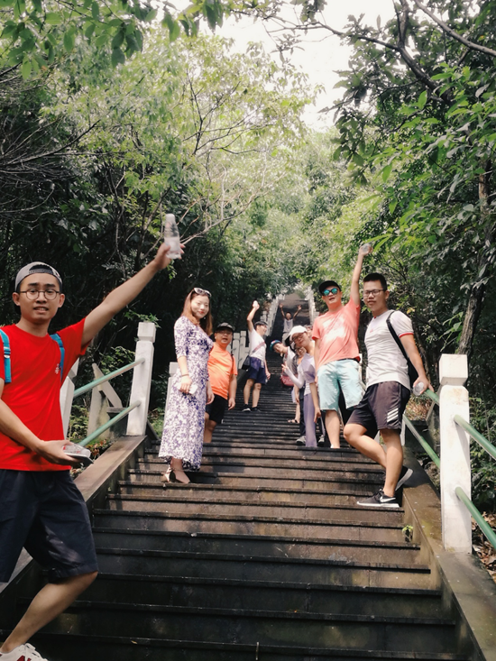 黃賢海上長(zhǎng)城森林公園,東西北三面環(huán)山,南面臨海,景色十分壯觀。一行人你拉我,我拉你的,登上了第一個(gè)山頂。天空也很作美,下了一場(chǎng)大雨,送來了清涼。等雨停了,我們又繼續(xù)前往了另外一個(gè)山頭,登上了海上長(zhǎng)城之路。大約經(jīng)過一個(gè)小時(shí),我們登頂,眺望遠(yuǎn)方的風(fēng)景,覺得心曠神怡。晚餐時(shí),我們迎來了一個(gè)小小的驚喜,部門有2位同事生日,殷總早早的準(zhǔn)備好了生日蛋糕,著實(shí)給他們一個(gè)意外的驚喜。