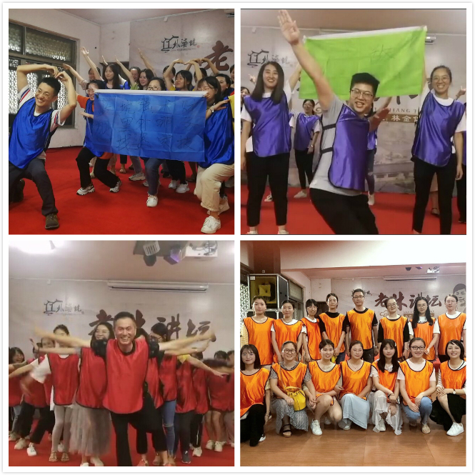 餐后全體成員在文化禮堂分成四隊,開始做游戲完成比賽。我們工作的時候特別認真嚴謹,游戲玩起來可是high到飛起,怎么好玩怎么來。特別是第一個起隊名和口號的環節,一隊雄鷹隊,“雄鷹,雄鷹,賽爾精英”;二隊無敵隊,“無敵,無敵,所向披靡”;三隊藍翔隊,“財務技術哪家強,外婆坑里找藍翔”;四隊向錢隊,“不吃飯,不睡覺,打起精神數鈔票”。“愛的魔力轉圈圈”、“地雷陣”、“博弈雙龍”等多個游戲讓大家打破了之前的拘謹和距離,踴躍熱情地參與到游戲中。經過激烈角逐,評出了一二名,彩姐還給兩個隊長分別發放了本次比賽的獎勵金,把活動推向了高潮。