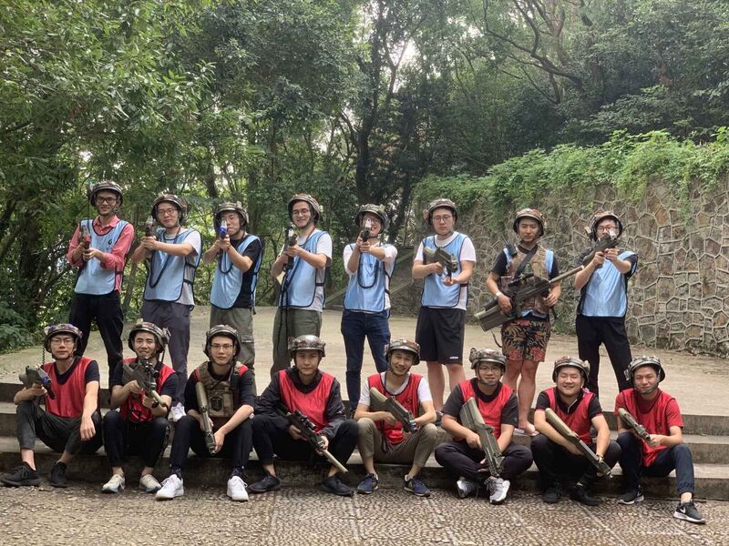 當天早上9:30,采購部的16位勇士們就已經(jīng)精神抖擻地在東錢湖的真人CS戰(zhàn)場上整裝待發(fā)。在教練的指導下,8V8的小團隊攻防戰(zhàn)正式拉開序幕。正所謂一槍在手,天下我有,每一個小伙伴們都跟打了雞血似的,有匍匐前進的,有快速沖鋒的,有躲在碉堡里放冷槍的,你來我往,激烈的槍戰(zhàn)聲音和被擊中的頭盔發(fā)出的慘叫聲此起彼伏,現(xiàn)場極度火熱。
