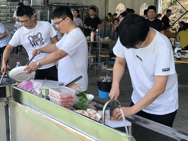 上午10點(diǎn),大家一同驅(qū)車前往這次的目的地——曹村花間樂園。取完票后,我們拎著食材直奔花間燒烤場。為了能夠吃上一頓豐盛的午飯,大家各自分工,女生們負(fù)責(zé)擇菜洗菜,清理廚具,男生們則紛紛化身為大廚,各顯身手,一展廚藝。一盤盤色香味俱全的菜肴陸續(xù)出鍋,大家邊烤邊吃,甚是愜意。吃飽喝足以后,大家開始自由活動。有的湊在一起玩紙牌游戲,有的選擇在樂園里嘗試各種娛樂項(xiàng)目,度過了一下午的歡樂時(shí)光。