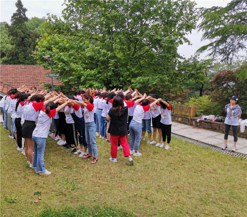 第二天又是陽光明媚的大好天氣,大家分坐四輛景車進入莫干山景區,下車后,一股清涼感瞬間包裹全身。這里風景甚美,竹林綠蔭,激流瀑布,再加上清末民初興建的數百幢別墅掩映其間,非常清幽,不愧是出名的避暑勝地和純天然氧吧。大家拾階而下,聽著干將莫邪的故事,瀏覽了劍池、皇后飯店、毛主席下榻處、武陵村、蔣介石夫婦蜜月地等景點。之后,我們品嘗了特色的午飯,玩了小游戲,見了一些常常聯系的“網友”,增進了友誼和團隊凝聚力,也跳了《一起學貓叫》的舞蹈,莫干山之旅就在歡樂中落下帷幕。