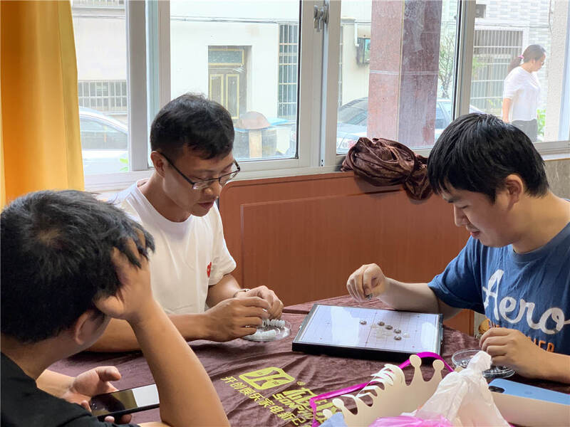 短暫休整后,大家各自組隊開始戰斗,有 “國粹”比賽,有五子棋、象棋等棋類項目,有“力爭上游”“環環相扣”等新式比賽,期間還穿插了“畫畫傳遞猜詞”“害你在心口難開”“交換名字”等趣味游戲,好不熱鬧。