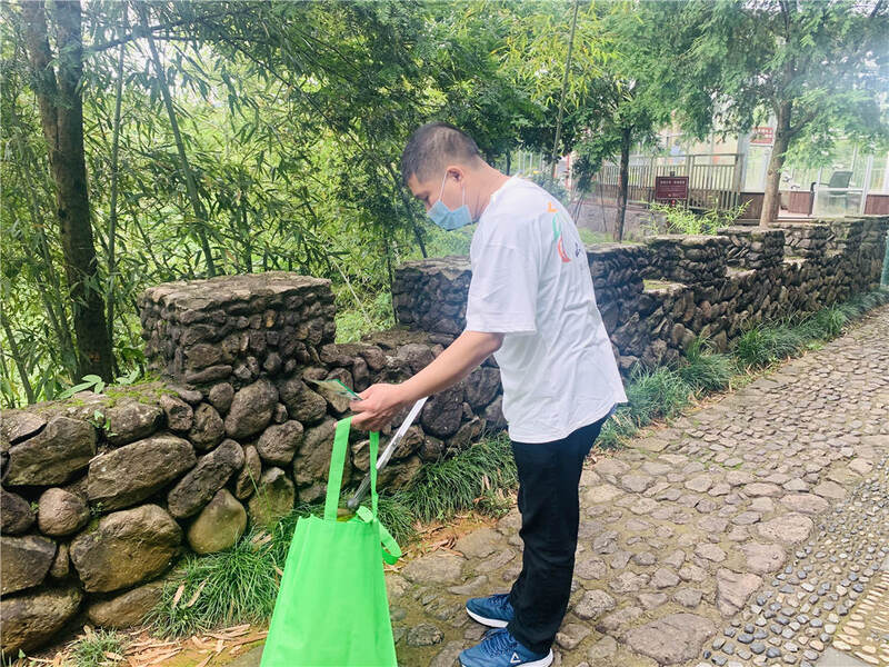 第二天,睡到自然醒的我們開啟了團建的隱藏副本——山野清風。大家帶著自己的夾子和袋子,將被人隨意丟棄的煙頭、煙盒、塑料瓶、包裝袋等垃圾收入“囊”中,在進行爬山這項有氧運動的同時將環保進行到底,既呼吸了新鮮空氣,又保護了磐安美麗的風景。
