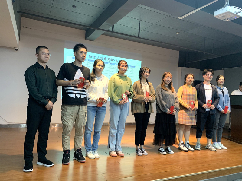 最后,終于到了眾人矚目的月度個人獲優、部門獲優以及新客人接單的表彰環節。咱們不來虛的,都是實打實的現金紅包!臺上的獲優人員喜上眉梢,臺下的小伙伴們羨慕紛紛。大家繼續努力,下個月我們拭目以待。在展示完下個月的部門PK內容后,徐總一番言簡意賅的總結講話結束了此次會議。