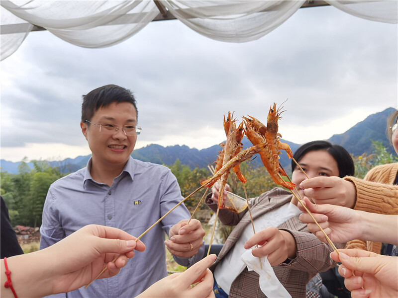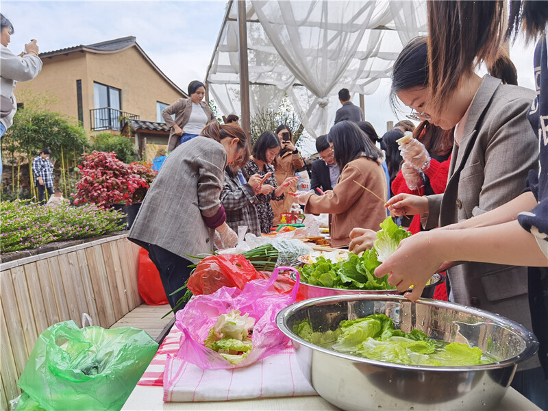 一入深山,壯麗秀美的自然風(fēng)景映入眼簾。稍作休整后,我們便開(kāi)始了今日重頭戲——燒烤。洗菜、擇菜、穿串兒、生火、燒烤,大家一邊干著活兒,一邊品嘗著美食。期間,大家一起聊天做游戲,可真是美哉樂(lè)哉。