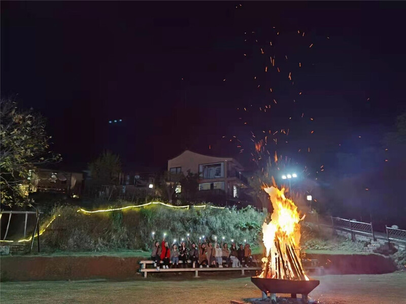 晚飯后,小伙伴們?cè)诼斓男强障聡@火堆唱歌跳舞,堆簇而立的火光將每個(gè)人的笑臉都映照得更加明亮。古村的夜晚,安逸又溫暖。