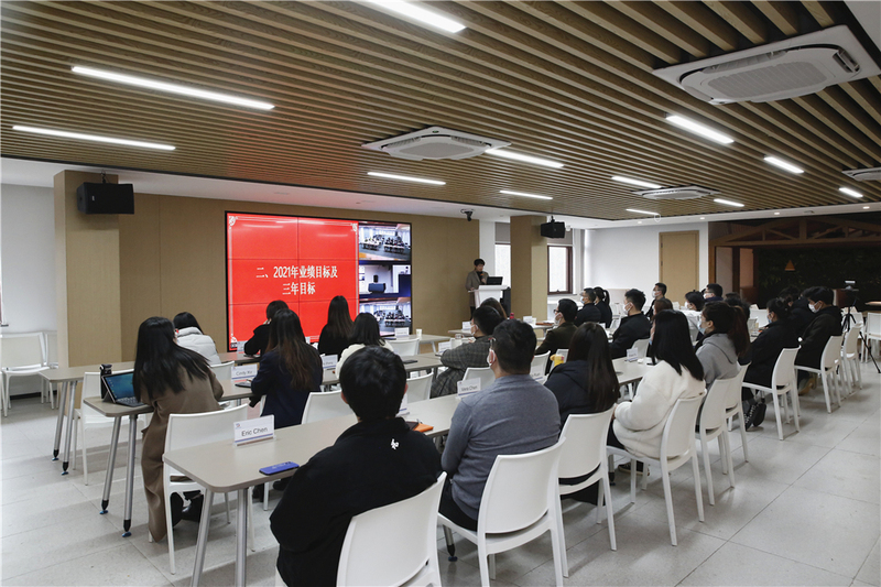 會議上,謝總總結了公司2020的業績表現并分析了不足之處,同時公布了2021年的目標、獎勵機制等。謝總指出,未來綠時對內要搭團隊、發展優質供應商,對外要做客戶,既要抓住機遇,同時要關注業務走勢,把控好風險。