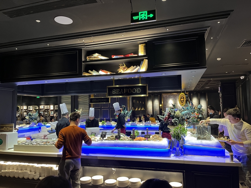 隨后我們前往“加餐”,享受了一頓滿足的海鮮自助?;畋膩y跳的大蝦,精選的各類海螺,完全停不下來?;锇閭冞叧赃吜模瑑蓚€小時的自助時間好像也不夠用。