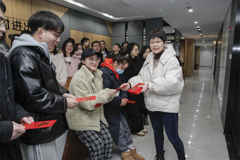 早上9點28分,謝總給大家分發新年開門紅包,你一句“虎年大吉”“新年掙大錢”,我一句“新年沖沖沖”“開工大吉”,讓我們的開工儀式充滿了歡聲笑語。