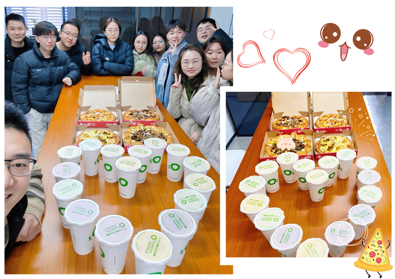 所有綠時(shí)業(yè)務(wù)一部員工來到茶水間,陽光恰到好處地照在大家臉上,每個(gè)人臉上洋溢著喜悅,工作熱情迅速都被調(diào)動起來。大家喝著鮮榨果汁,吃著披薩,共同慶祝部門成果,并暗自下定決心為新的目標(biāo)努力。桌上的下午茶代表著今年新的開始,整個(gè)部門都干勁滿滿,充滿著對新的一年的期待。