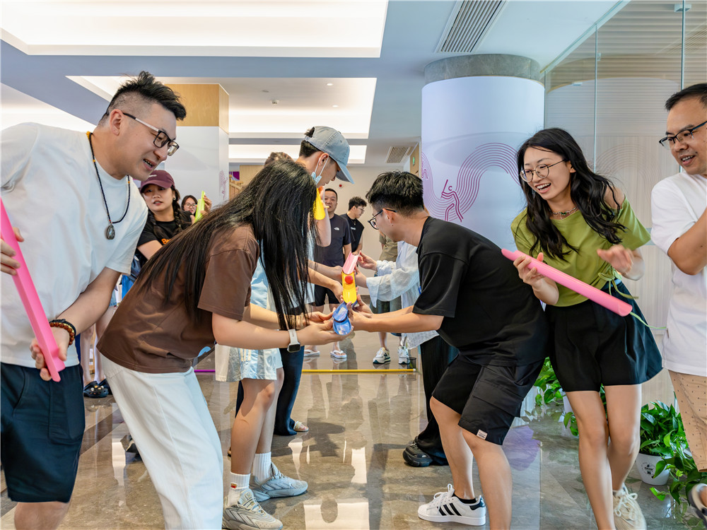 抵達后,午餐用美食治愈疲憊,為下午的精彩蓄力。酒店下午茶場地秒變 “歡樂場”,伙伴們一邊品嘗茶點,一邊投身室內分組游戲比拼。 吹球過河時,小心翼翼的專注模樣;疊杯金字塔環節,爭分奪秒的緊張節奏;你劃我猜中,腦洞大開的趣味互動;越戰越勇連關游戲里,攜手闖關的默契配合,讓現場歡笑聲、加油聲此起彼伏,團隊情誼在游戲中持續升溫。